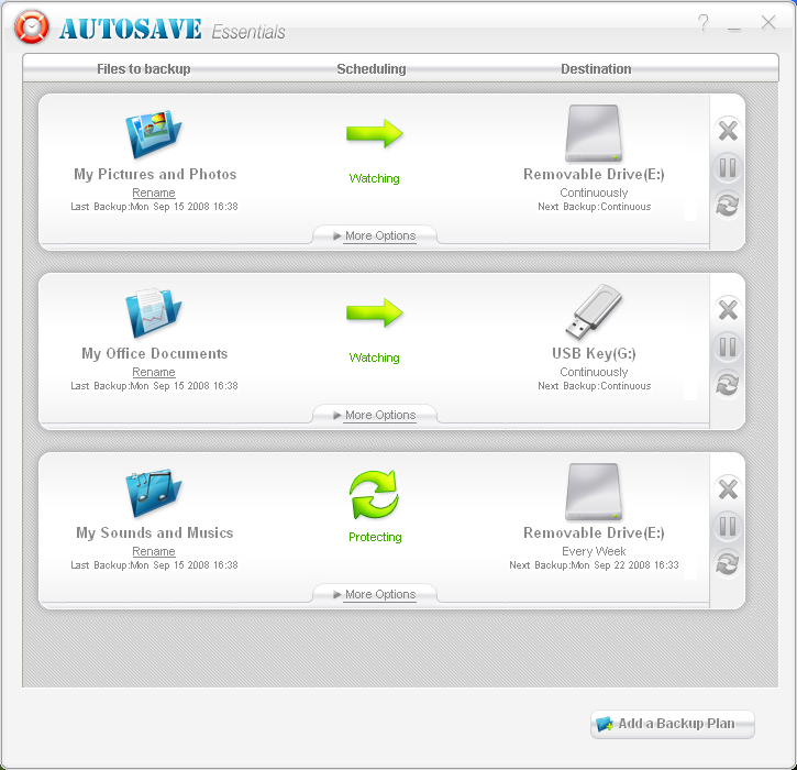 AutoSave Essentials does what it says, it automatically saves (backs up) your essential files by creating a duplicate copy in the safest place you have specified. Save photos, save videos, save music, save documents, save emails - in fact save anything that is valuable. If you are the person responsible for your family’s memories or your company’s accounts or even general data, it may just save your life. Plus no complications, it is as easy as 1-2-3!