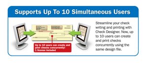 Streamline your check writing and printing with Check Designer. Now, up to 10 users can create and print checks concurrently using the same design file. 1 license included.