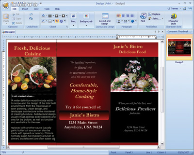 Choose from more than 8,400 professional background designs and a broad variety of layouts. From classical and professional, to corporate and contemporary, Design & Print lets you design high-impact marketing communications for every business. You can even customize your design to fit your needs.