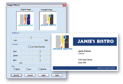Create documents with impact. Design & Print lets you adjust any image to your liking. You can change brightness and contrast, emboss, invert or blur for a designers touch. Placing text and logos over images just got easier.