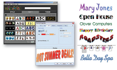 Create stunning text with powerful text effects. Select from 500 professionally designed graphic typestyles or create your own unique text with warp, shadow, transparency, outline and color.
